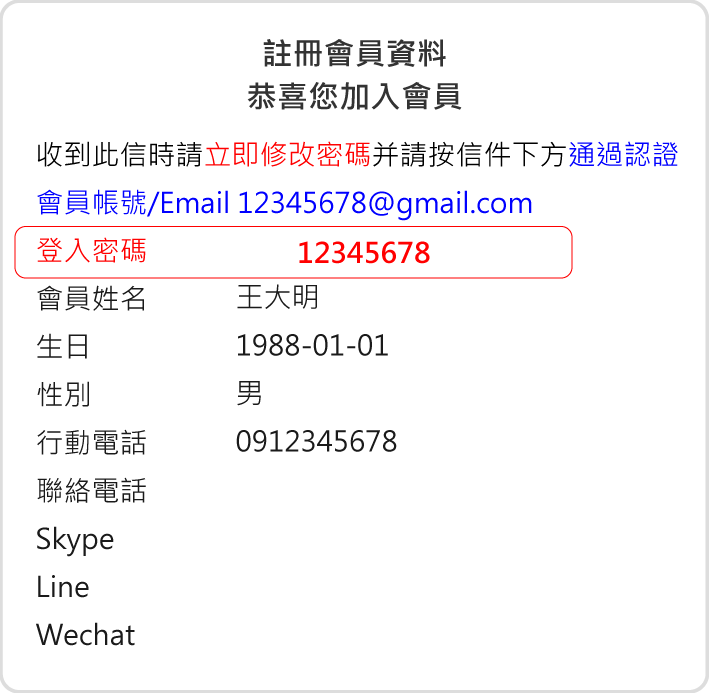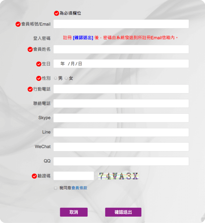 填入勾選項目後送出,等待約10分鐘內系統傳送密碼至Email